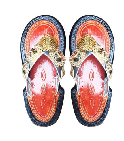 Radiate elegance with these gold and silver Ahenema sandals featuring metallic accents and traditional craftsmanship. The dual metallic tones create a luxurious effect perfect for weddings, festivals, and special celebrations.