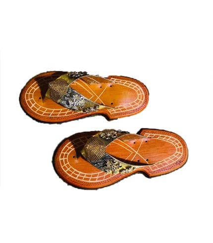 Receive royal treatment with these gold design Ahenema sandals featuring extensive gold elements and traditional symbols of status and importance. The luxurious appearance makes them perfect for leadership ceremonies and celebrations.