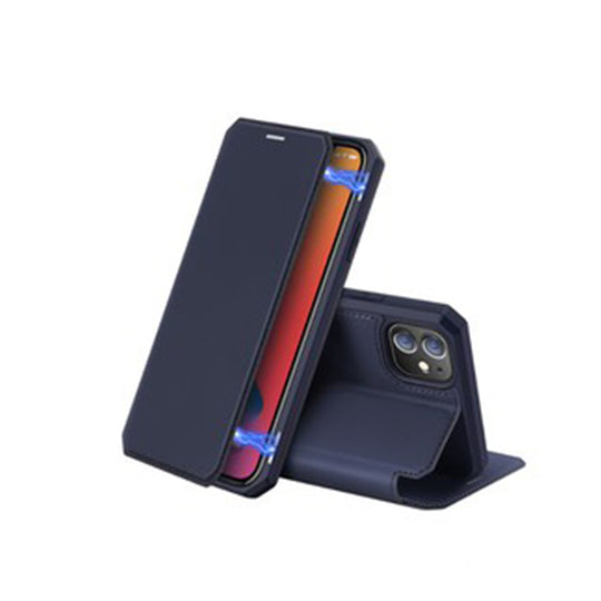 The compact PU leather bookcase for iPhone 12 Mini (5.4") offers card slots, magnetic flap, and hands-free stand. Speaker hole, full protection—wireless charging support with precise ports in various colors.