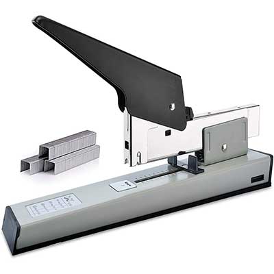 This heavy duty stapler is designed to handle large volumes of paper with ease, making it perfect for both industrial and domestic applications. Built for durability and strong performance, it securely fastens thick stacks of documents, ensuring efficient and reliable stapling every time.