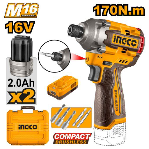 The CIRLI16178 from Ingco is a high-performance 16V cordless impact driver engineered for demanding fastening tasks, combining compact design with exceptional torque. Powered by a brushless motor, this tool offers improved efficiency, longer lifes