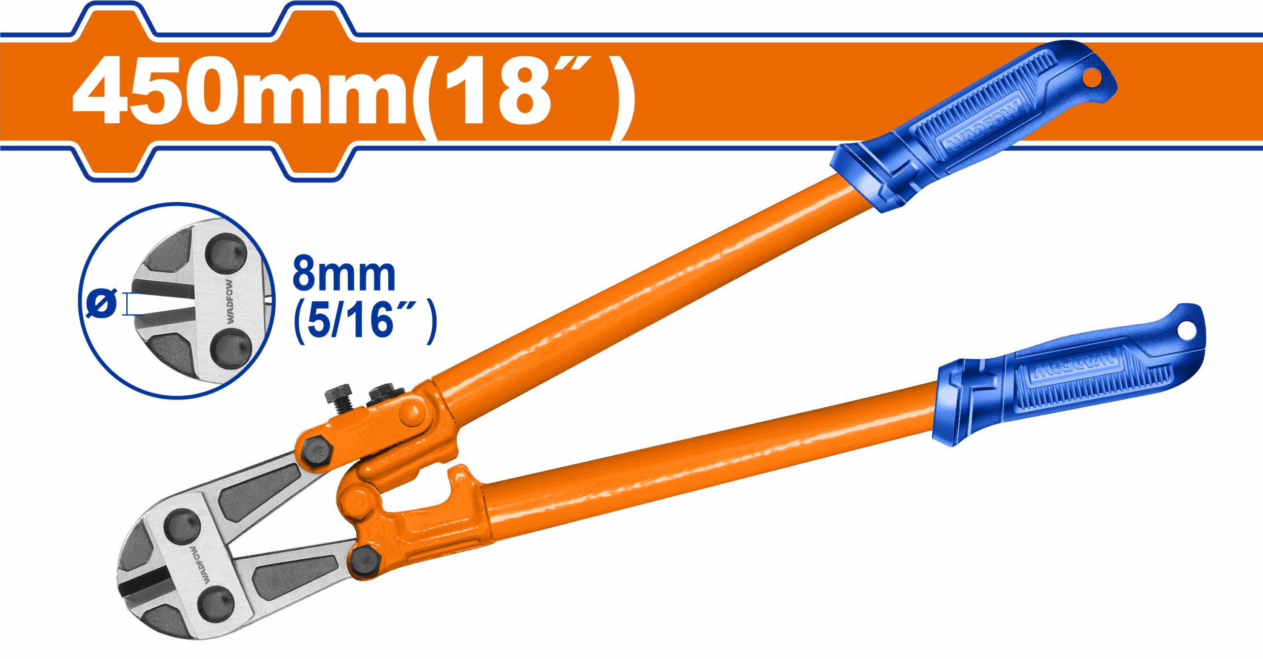 The WBC1118 is an 18-inch bolt cutter designed for a variety of cutting tasks in construction, metalworking, demolition, and general maintenance. With a maximum cutting range of 8mm in diameter, it is ideal for cutting bolts and other metal items.