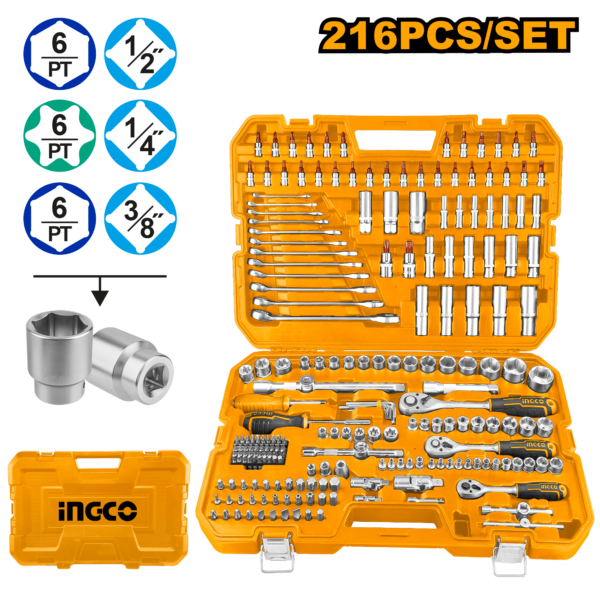 The HKTHP22161 216-piece Combination Tools Set is an extensive collection designed for professional and DIY enthusiasts who require a wide range of high-quality tools for various mechanical tasks. This comprehensive set includes three ratchet wren