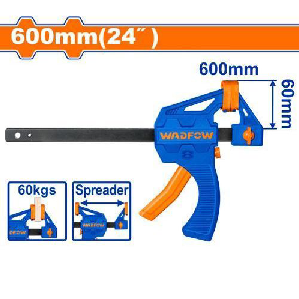 The WCP4324 24" Quick Bar Clamps from WADFOW are efficient and user-friendly clamping tools designed for woodworking, assembly, and a wide range of DIY tasks. With a 600mm clamping capacity and a 60mm throat depth, these clamps provide ample r