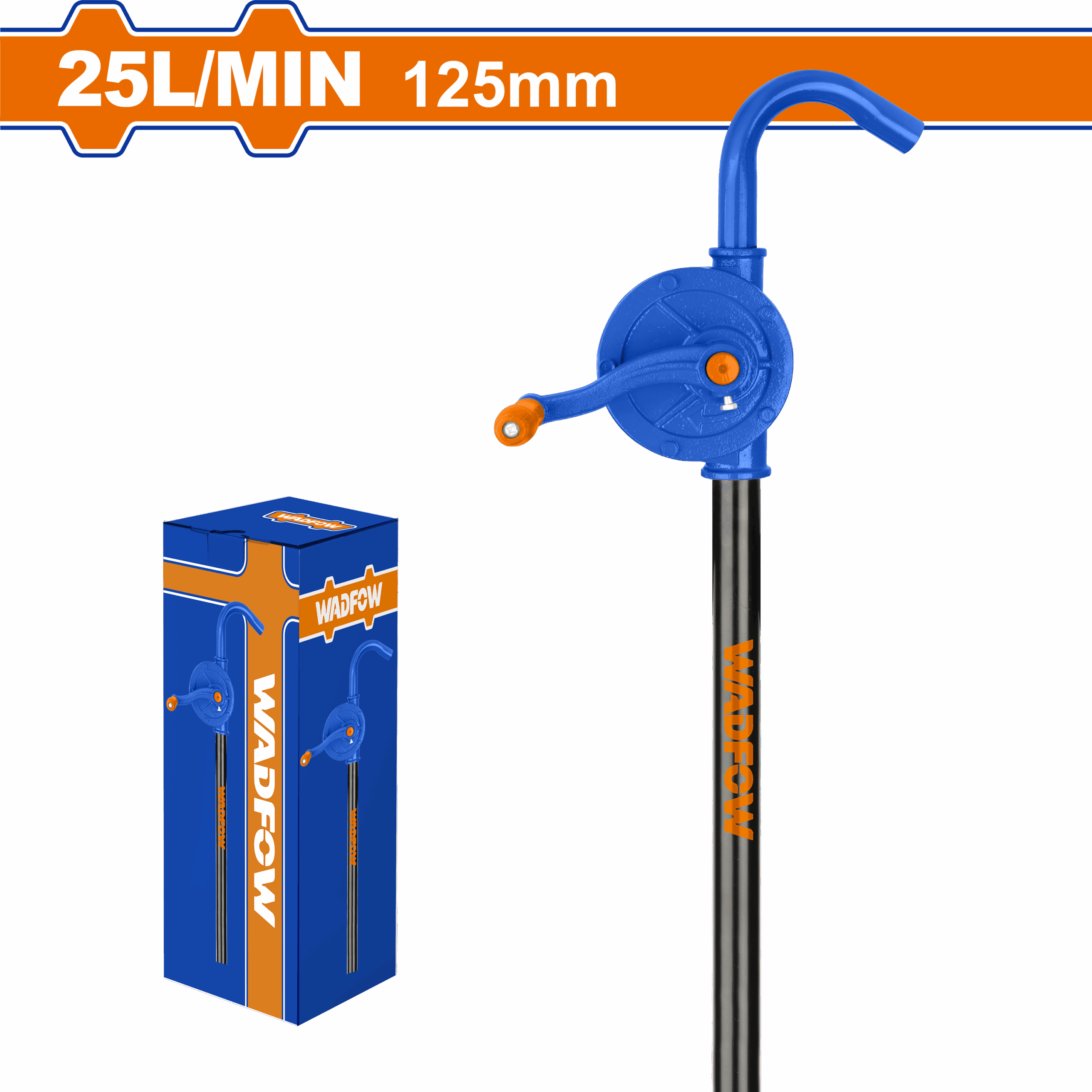 The WHY2525 Hand Oil Pump by WADFOW is a robust and efficient tool designed for the easy transfer of oil, diesel, and other compatible fluids. Ideal for use in workshops, garages, agricultural settings, and anywhere manual fluid transfer is needed, this pump delivers high performance with a 25L/min flow rate.