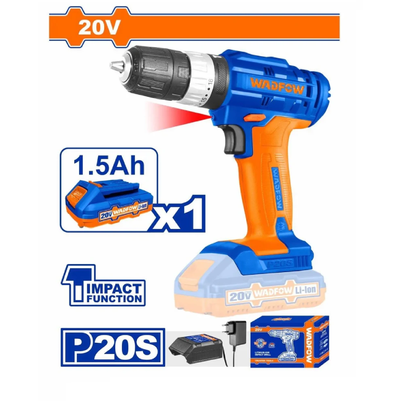 The Wadfow WCDP521 20V cordless impact drill is a versatile and convenient tool designed for both DIY enthusiasts and light professional use. Offering a maximum torque of 35Nm and an impressive impact rate of 22,500 bpm, this drill combines tradit