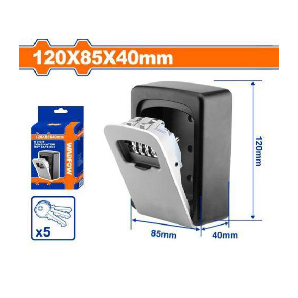 The INGCO WKFB1119 4-Digit Combination Key Safe Box is a compact, wall-mountable security solution for safely storing spare keys or access cards, ideal for homes, offices, rental properties, and construction sites. Built with a durable aluminum alloy body and zinc alloy code wheels, it offers strong resistance to tampering and environmental wear. Measuring 120×85×40mm, it features a resettable 4-digit combination lock, eliminating the need for physical keys, and a protective dust cap to shield the dials from dirt and corrosion. With a capacity of up to 5 standard keys, pre-drilled holes for permanent installation, and sleek, space-saving design, the WKFB1119 combines convenience, security, and durability. Packaged in a color box, it’s retail-ready and installation-ready.