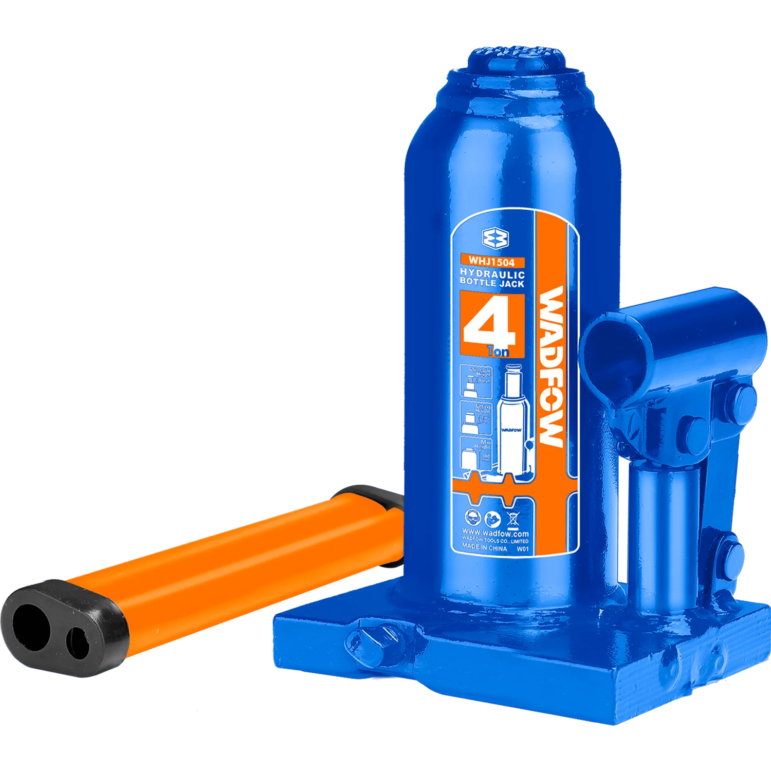 The Wadfow WHJ1504 is a 4-ton hydraulic bottle jack designed for portability and ease of use. With a minimum height of 180 mm and a lifting height of 110 mm, this jack is ideal for smaller lifting tasks. The adjustable screw provides an additional 60 mm of height adjustment, making it versatile for a variety of vehicles. Weighing just 3.29 kg, it's lightweight and easy to maneuver, making it perfect for emergency tire changes, basic vehicle maintenance like brake inspection or wheel removal, and garage use. Always remember to follow safe lifting practices and use support stands before working under a lifted vehicle to ensure stability and safety.