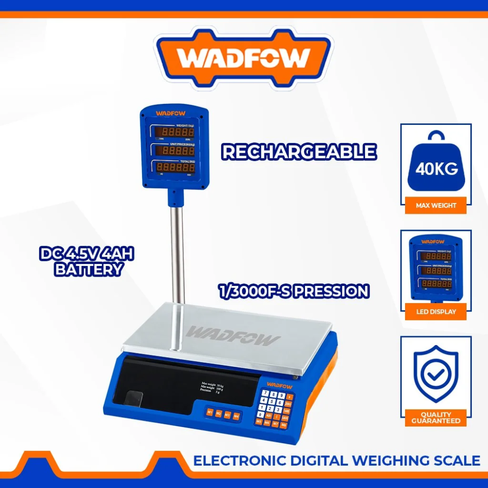 The WEC1504 Electronic Scale is designed for precise and efficient weighing in various settings, including retail and food preparation. With a maximum weight capacity of 40kg and a graduation of 2g, it ensures accuracy for smaller to medium-sized items.