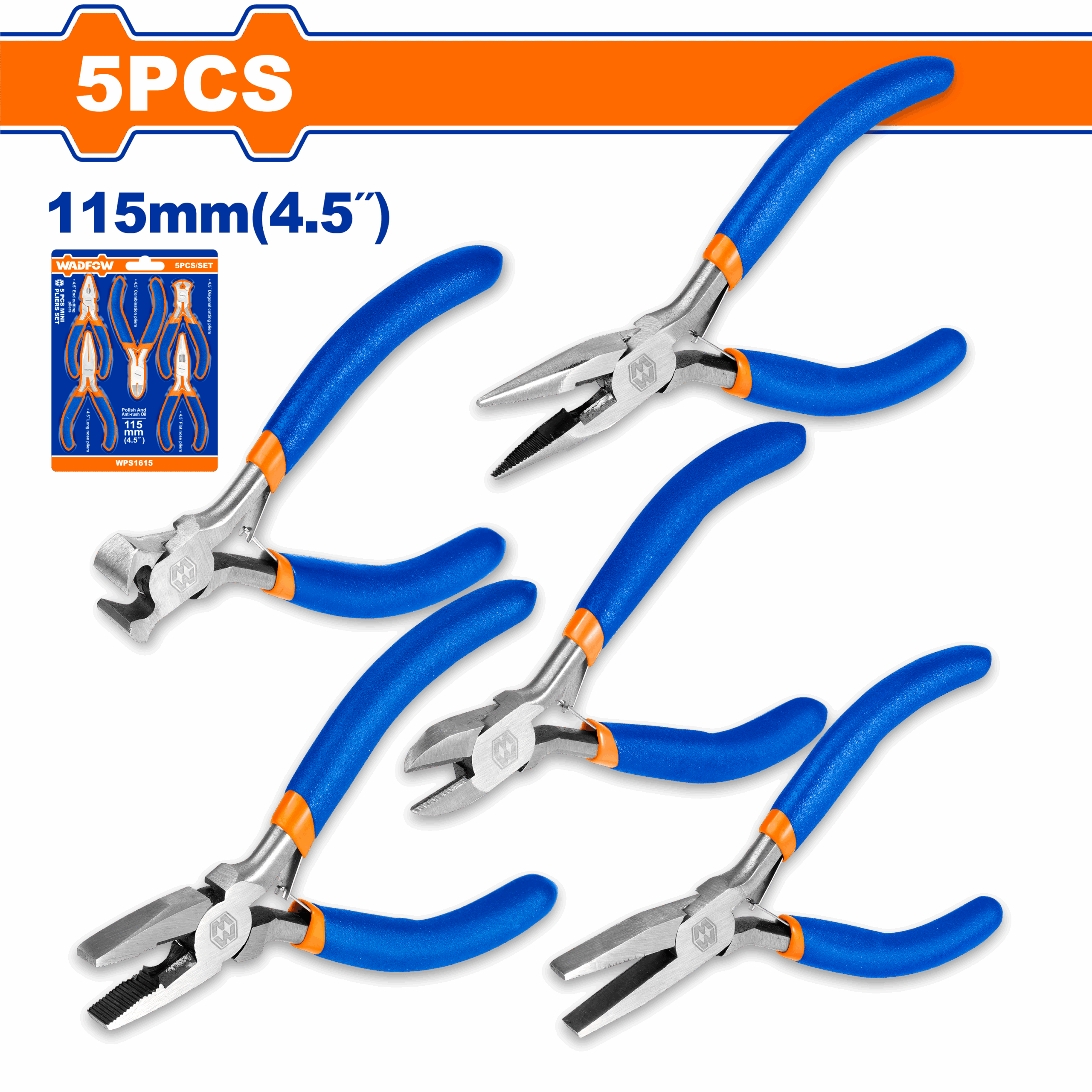 The WPS1615 is a 5-piece mini plier set, perfect for precision work in electronics, jewelry making, model building, and other tasks requiring fine manipulation in tight spaces. Each tool in the set is 4.5 inches in length, providing excellent cont