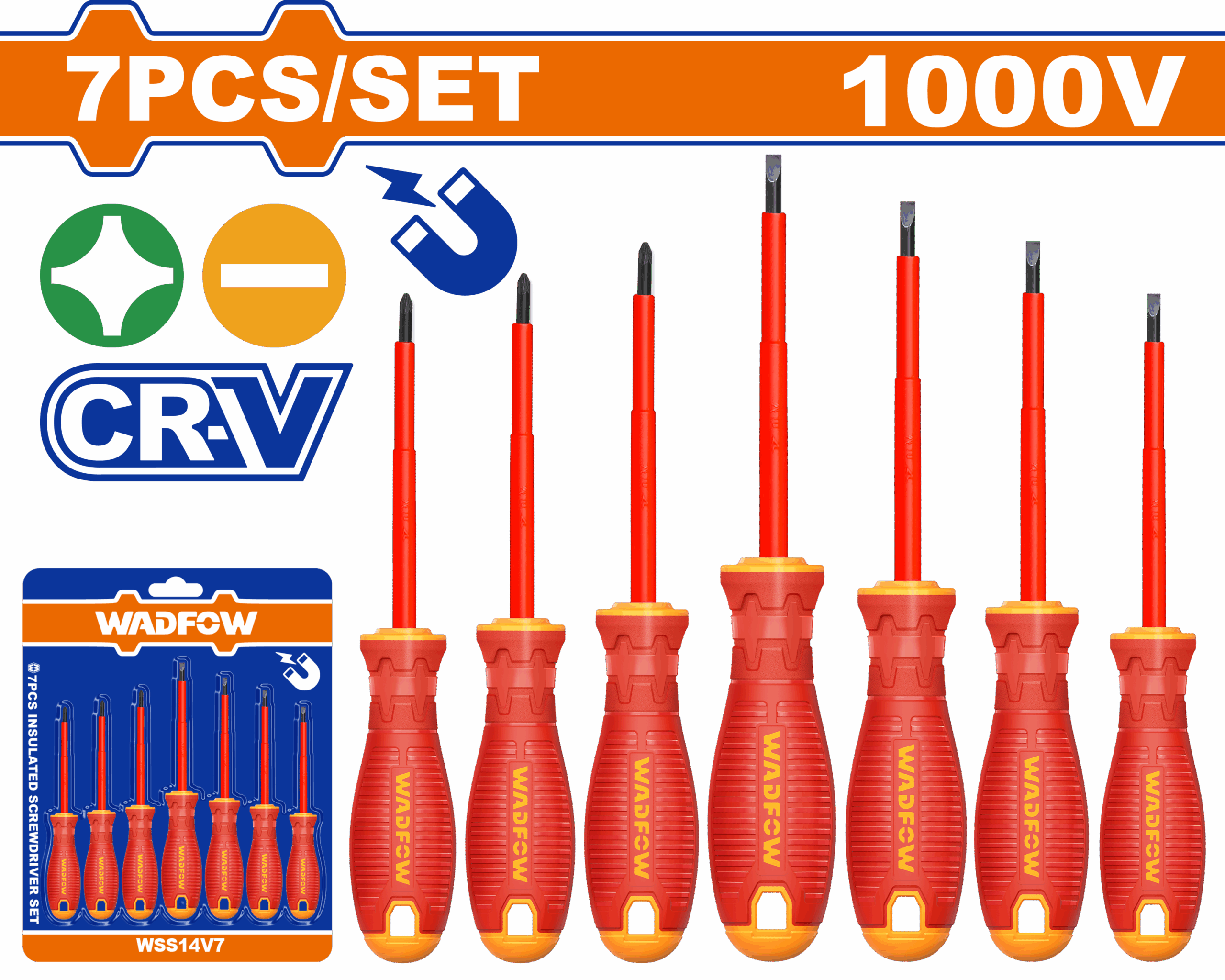 The WSS7407 is a 7-piece insulated screwdriver set designed for professionals working with electrical systems. Each screwdriver in the set is insulated up to 1000V, providing reliable protection against electrical shock. The screwdrivers feature a