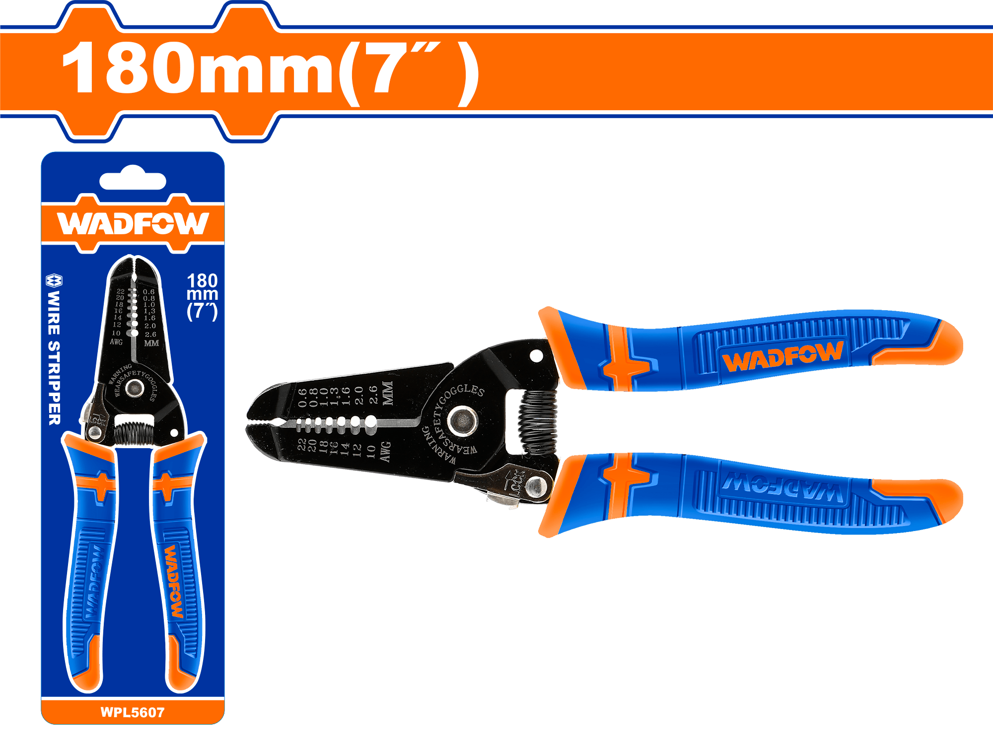 The WPL5607 is a 7-inch (180mm) wire stripper designed for precision wire cutting and insulation stripping. This tool is perfect for electricians, technicians, or anyone working with electrical wiring. It features a sharp cutting edge for cleanly