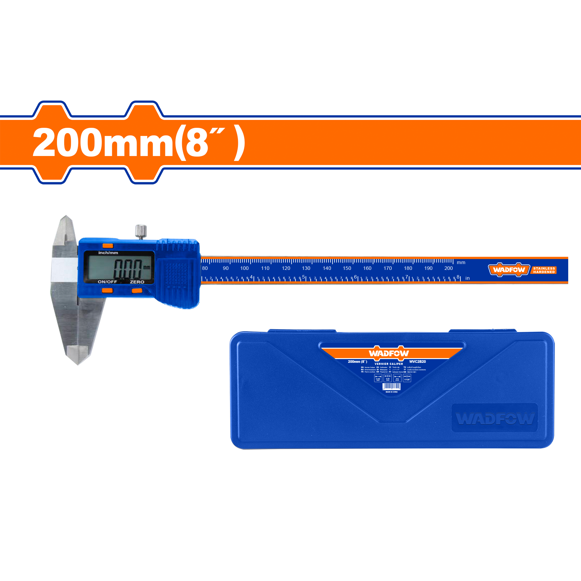 Key features of the WVC2B20 include a range of 0-200mm (approximately 0-8 inches), with a precision of 0.01mm, allowing for ultra-precise readings. The digital display makes it easy to read measurements clearly and quickly. Additionally, it features a metric/inch conversion function that lets you switch between measurement systems at any position with just the press of a button.
