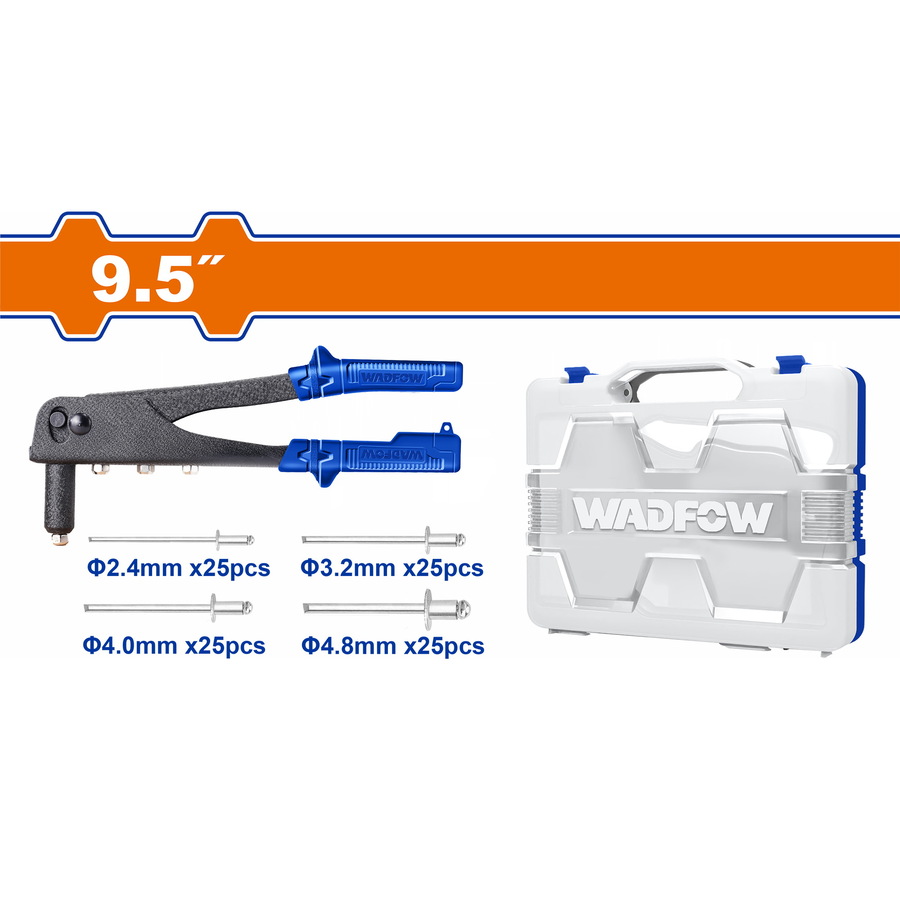 The WHR1909 9.5" Hand Riveter & 100 Pieces Rivets Kit from WADFOW is the perfect solution for DIY enthusiasts, craftspeople, and professionals who need to create strong, permanent fastenings in a variety of materials. This all-in-one kit inclu