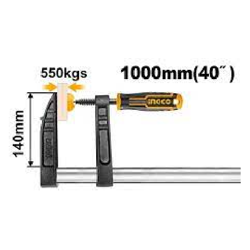 The HFC021404 F Clamp is a heavy-duty clamping tool built for strength, durability, and precision. Featuring a large clamp size of 140x1000mm, it's ideal for woodworking, metalworking, and construction projects where a long reach and strong hold a