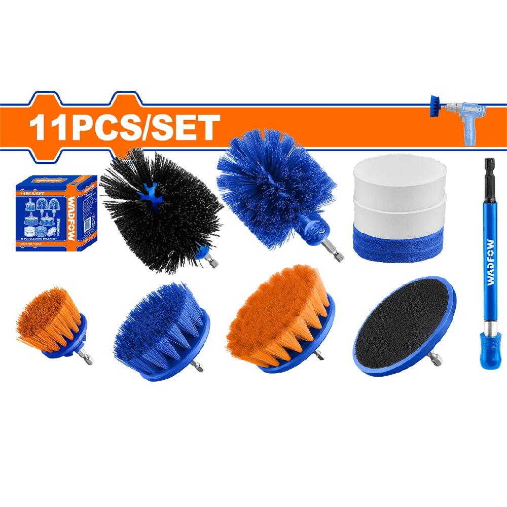The Wadfow WND5403 11-piece Cleaning Brush Set is a versatile and comprehensive collection of power-scrubbing tools designed for a wide range of cleaning tasks. This set includes a variety of brushes, sponges, and pads, each with different levels
