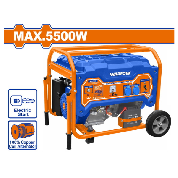 The WADFOW WGEAA08 is a versatile gasoline-powered generator designed to provide a reliable power source for both residential and commercial applications. With a maximum output of 5.5kW and a rated output of 5.0kW, it is ideal for running essentia