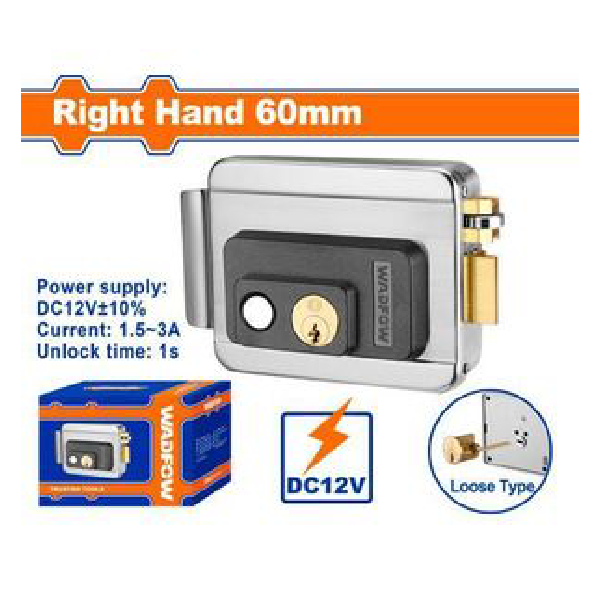 The WADFOW WKLZ531 60MM Right Hand Electric Rim Lock provides a dependable and secure solution for both residential and commercial doors, combining strength, durability, and convenience. Built with a solid brass cylinder and a brass-wrapped aluminum coil, it ensures long-term reliability and resistance to corrosion. The lock features a brass roller latch with a stainless steel wheel for smooth operation, while the brass latch bolt adds extra strength. Its carbon steel lock case and strike box are nickel-plated for enhanced durability and a clean finish. Powered by a DC12V ±10% supply, the lock offers fast, one-second unlocking—ideal for integration with access control systems. For added security and convenience, it comes with three brass keys for manual override and is specifically designed for right-hand opening doors, making it a practical and stylish option for entrance and gate security.
