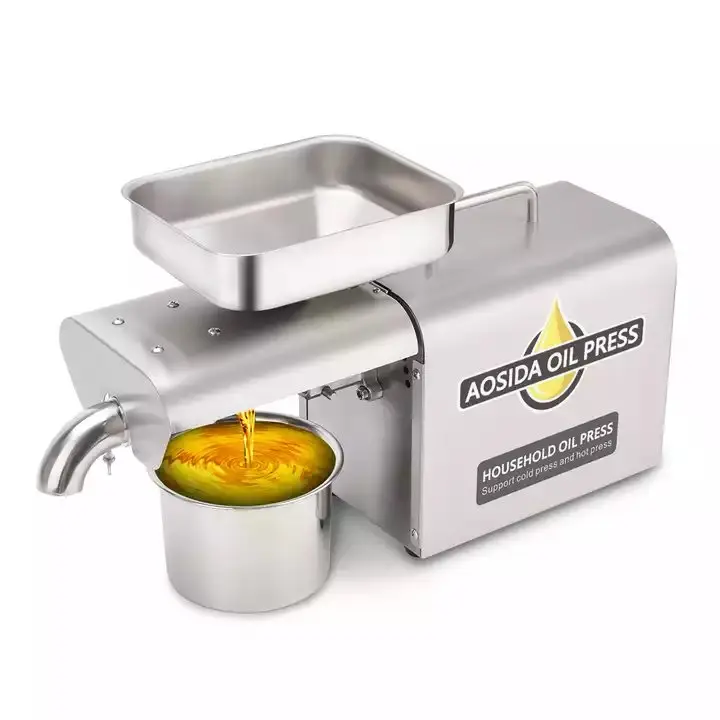 Automatic expeller: 650W motor, 90% yield, 30kg/h max. 46x32x28cm, 12kg. Food-grade 304 SS screw, multi-stage press. Temperature control 0–300°C. Extracts flax, peanut, sunflower, almond, walnut, coconut. Easy-clean filter, quiet