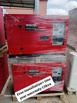 The Honda 15KVA Diesel Generator is a heavy-duty Diesel Generator engineered for consistent, uninterrupted power delivery in homes, offices, shops, and light industrial facilities. Rated at 15 KVA (12.0 KW standby power), it provides ample capacity to run multiple heavy-duty appliances and equipment simultaneously. Its robust, fuel-efficient diesel engine is purpose-built for extended operation hours with minimal maintenance downtime. The 100% copper winding engine ensures superior heat dissipation, longer motor lifespan, and improved overall electrical efficiency. Backed by a 5-year manufacturer warranty for complete peace of mind. The Honda brand is renowned for engineering excellence and dependable after-sales support across Ghana and West Africa. Whether used as emergency backup power or a primary off-grid electricity source, it handles simultaneous loads — from air conditioners and refrigerators to industrial equipment and power tools. Order today and enjoy dependable, long-lasting power generation.