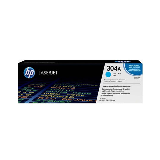The HP 304A Cyan Toner (CC531A) delivers 2800 bright pages for HP Color LaserJet CP2025/CM2320 series. Original HP reliability for sharp images and text—ideal for business color printing with fade-resistant quality.