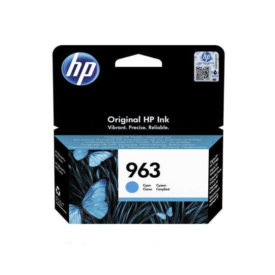The HP 963 Cyan Original Ink Cartridge (3JA23AE) delivers 700 sharp cyan pages for HP OfficeJet Pro models. Professional color accuracy for charts and photos—reliable, high-quality printing with sustainability in mind.