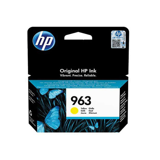 The HP 963 Yellow Original Ink Cartridge (3JA25AE) yields 700 bright, consistent pages for HP OfficeJet Pro printers. Fade-resistant color ideal for graphics and photos—reliable, professional results with easy recycling via HP Planet Partners.