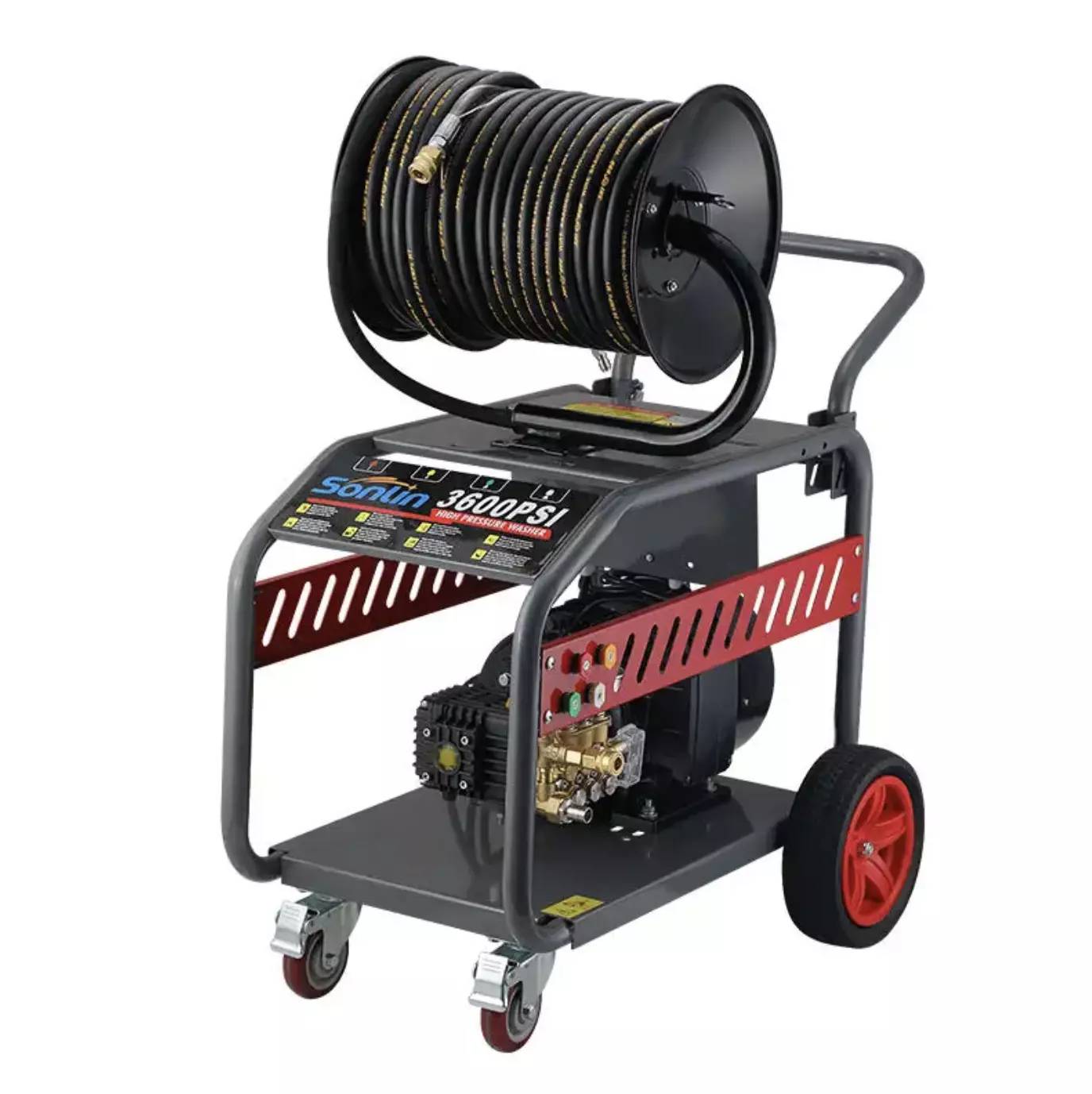 The HydroMax 7.5KW High-Pressure Washer is a powerful, professional-grade cleaning machine built for demanding commercial and industrial applications. Driven by a robust 7.5KW electric motor, it delivers up to 250 bar (3625 PSI) of pressure with a high flow rate of 15L/min, making it ideal for tackling heavy-duty cleaning tasks across car washes, construction sites, factories, and agricultural operations. Measuring 77 × 61 × 62 cm, it features a durable steel frame with corrosion-resistant components for long-lasting performance, while its electric operation ensures quiet, emission-free use with lower maintenance compared to fuel-powered alternatives. Adjustable pressure settings allow for both gentle rinsing and aggressive grime removal, and industrial wheels paired with an ergonomic handle offer easy transport across job sites. Designed for continuous operation without overheating, the HydroMax washer combines power, reliability, and efficiency to meet the toughest cleaning demands.
