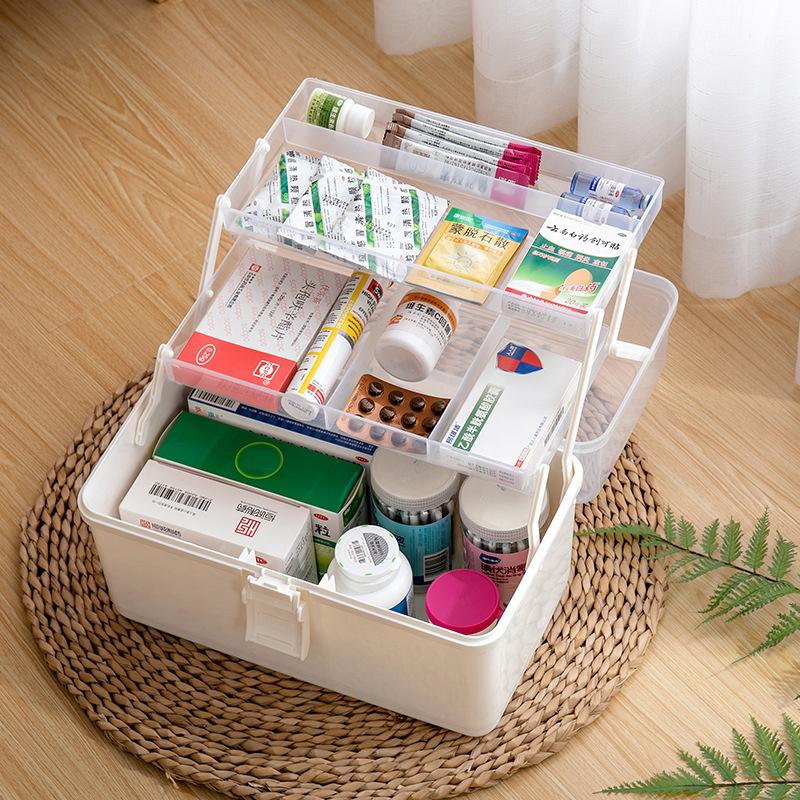 The Icobeg Empty First Aid Box is a sturdy, multi-layered plastic medicine cabinet designed for optimal organization and storage of medical supplies. Made from thickened, environmentally friendly PP material, it is odorless, non-toxic, and built to last. This lightweight yet solid box features a three-layer design with two cantilever trays that open stepwise, making it easy to sort and access contents. Ideal for homes, workplaces, or any setting needing a tidy and accessible first aid solution, it comes in standard and large sizes. Perfect for families?especially with children (store out of reach)?this practical cabinet helps declutter bathrooms and safely store pharmaceuticals. Optionally, the box can be stocked based on your preferred medical items upon request.