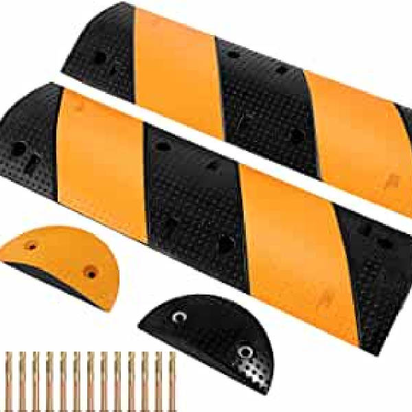 The Icobeg Rubber Speed Bumps are industrial-grade, durable speed ramps designed to slow down vehicles in high-traffic areas while providing added cable protection with a 2-channel base. These speed bumps are crafted from solid, non-slip rubber and feature high-visibility black and yellow color combinations for clear visibility even in low light. Engineered for longevity and performance, they are ideal for roads, parking lots, schools, factories, malls, and other commercial or residential areas. Each unit includes six bolt spikes for easy installation on gravel, asphalt, or concrete surfaces. Perfect for both indoor and outdoor use, these speed bumps help protect extension cords, hoses, and network cables while ensuring pedestrian and vehicular safety.