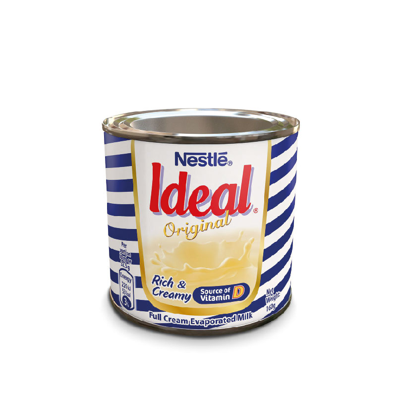 Ideal Milk is a premium evaporated milk brand produced by Nestl?, renowned for its rich, creamy taste and nutritional benefits. Made from full cream milk, it is naturally rich in calcium and fortified with vitamin D, making it an excellent choice for enhancing the flavor of beverages, cereals, teas, and various dishes. Ideal Milk has been a trusted household name in Ghana for over 50 years, offering consistent quality and taste. It is available in various pack sizes, including 160g, 170g, and 390g, catering to different consumer needs. Ideal Milk is widely accessible in supermarkets, neighborhood shops, and markets across Ghana, ensuring that consumers can enjoy its creamy goodness anytime.