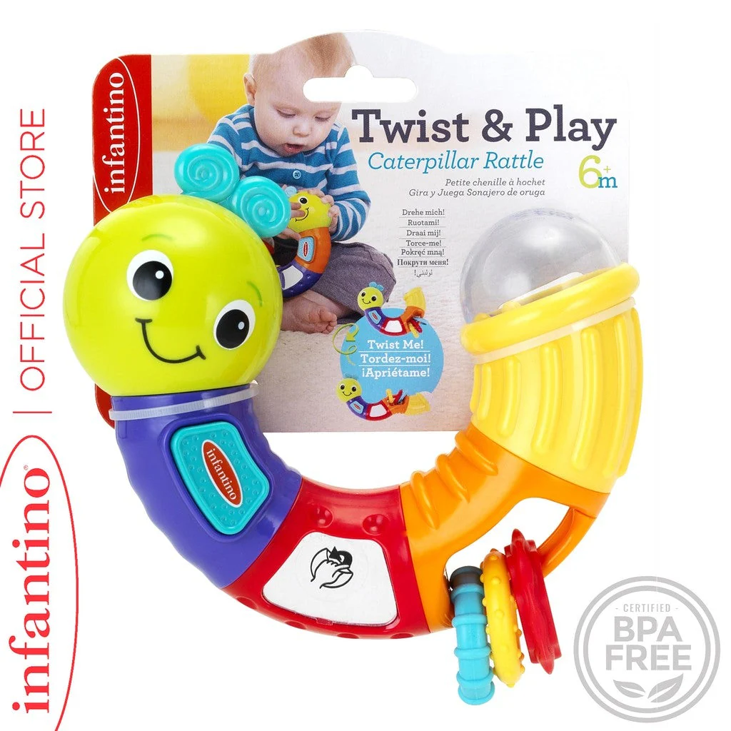 The Infantino Twist & Play Caterpillar Rattle is a colorful, multi-sensory toy that invites your baby to explore with every twist, shake, and spin. Packed with engaging features like a peek-a-boo mirror, sliding rings, and fun sound elements, this rattle stimulates both fine motor skills and sensory development in a playful, baby-friendly design.
