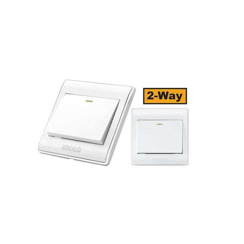 This Ingco 16A 1-gang 2-way switch measures 86mm by 86mm with an installation size of 60mm. It is rated at 16A 250V~ and designed for 2-way switching applications. Packed by plastic bag.