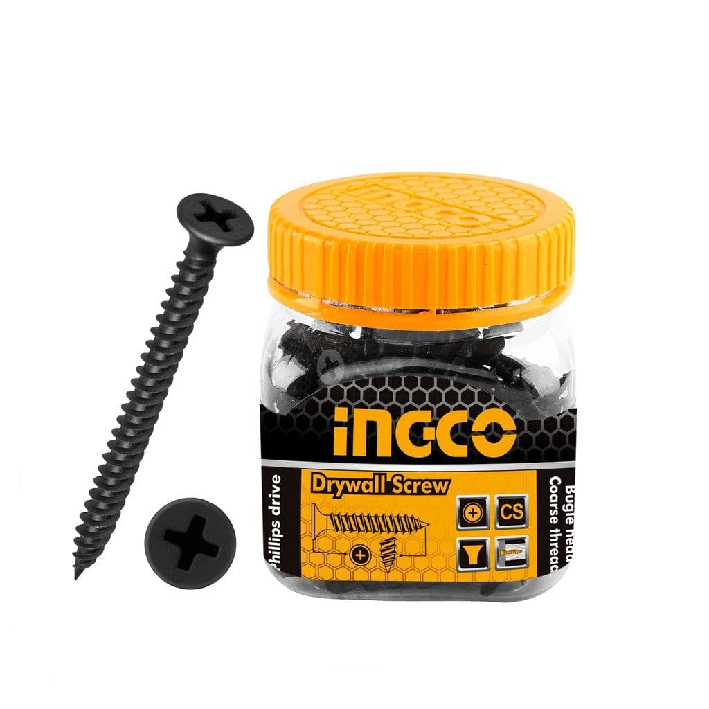 The Ingco HWDS3502521 set includes 250 drywall screws sized ST3.5 x 25mm, neatly packed in a bottle for convenient storage. These screws feature a Phillips drive with a bugle head, fine thread design, and a black phosphate finish?ideal for secure and efficient drywall installation.