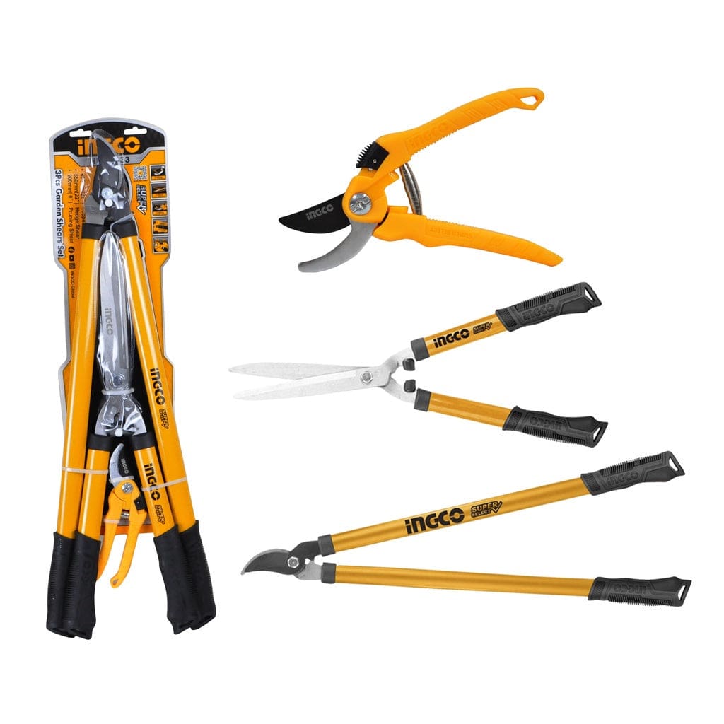 This 3-piece garden shears set by Ingco includes a 200mm (8") pruning shear, a 550mm (22") hedge shear, and a 690mm (27") lopper, making it versatile for all your gardening needs. Each blade is heat-treated for enhanced sharpness and d