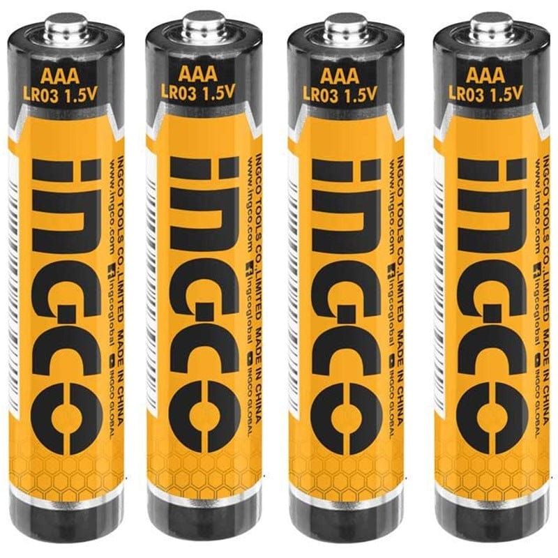The Ingco HAB3A01 is a pack of 4 AAA (LR03) alkaline batteries, each providing a nominal voltage of 1.5V. These batteries feature an aluminum jacket for durability and have a capacity of 1300 mAh, ensuring reliable and long-lasting power for your