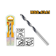 The Ingco DBT1201304 Drill Bit is made from HSS 4341 steel and features a 13mm diameter with a black groove and white pole design. It has a 135° tip angle for precise drilling and comes as a single piece packed in a double blister for protection