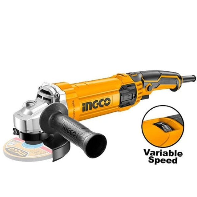The Ingco AG1100385 is a robust 5"/125mm angle grinder powered by an 1100W motor running on 220–240V at 50/60Hz. It offers a variable no-load speed range from 5000 to 12000rpm for versatile grinding applications. The grinder features a 125mm