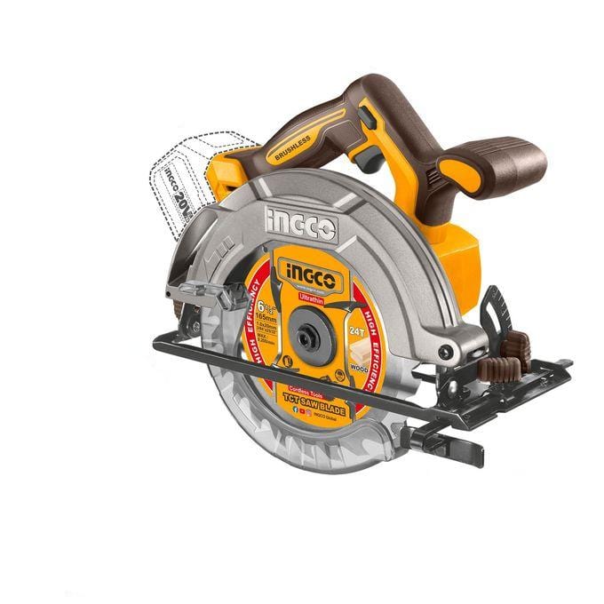 The Ingco 6" Cordless Lithium-Ion Circular Saw 20V CSLI16521 features a brushless motor and operates at a voltage of 20V with a no-load speed of 5200rpm. It comes with a 165mm (6-1/2") blade diameter, offering cutting capacities of 42mm at