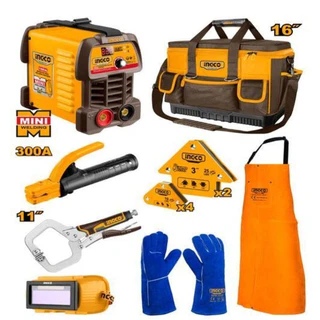 This welding combo kit includes 8 essential pieces for efficient welding tasks. It features an inverter MMA welding machine equipped with IGBT inverter technology, offering an input voltage of 220-240V (single phase) and a frequency of 50/60Hz. Th