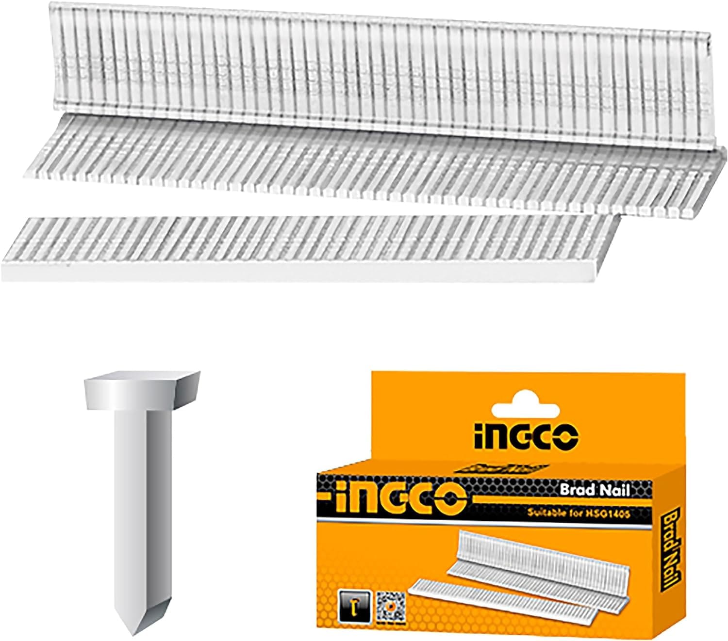 The Ingco STS6110 Brad Nails are 10mm in length, with a 2.0mm head and 1.2mm width, designed for precision fastening tasks. This set includes 5000 pieces, making it ideal for extended use in woodworking or upholstery. These brad nails are compatible with Ingco models HSG1405 and HSG1406, and come neatly packed in a color box for easy storage and organization.