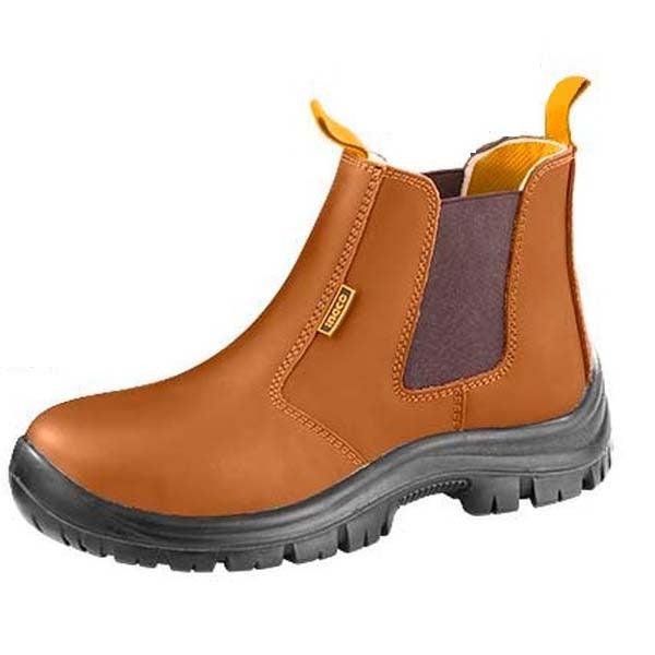 These slip-on safety boots feature a split leather upper for durability and comfort. They come with a steel toe cap, classified under the SB category of protective footwear. The boots have a dual density PU sole for enhanced support and grip. Available in sizes 39 to 46. Packed in a color box.