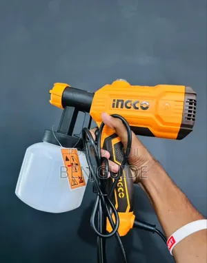 Voltage:220-240V~50/60Hz Input power:450W Spraying Pressure:0.1-0.2Bar Max. flow:550ml/min Max. This electric spray gun and airless paint sprayer provides fast, smooth, professional-quality painting and coating for walls, ceilings, furniture, fences, and vehicles. Ingco and Wadfow HVLP spray guns (450W–550W, 800ml–1000ml container, plastic and stainless steel tanks) atomise paint finely for drip-free application. Total spray guns (450W–530W) deliver adjustable spray patterns for wide coverage. Ingco 1000W airless paint sprayer provides high-pressure, high-volume coating for large surface areas. Cordless lithium-ion spray guns (20V) provide portable painting without a power cord. All guns include adjustable flow control and multiple spray patterns for latex, emulsion, lacquer, and stain.