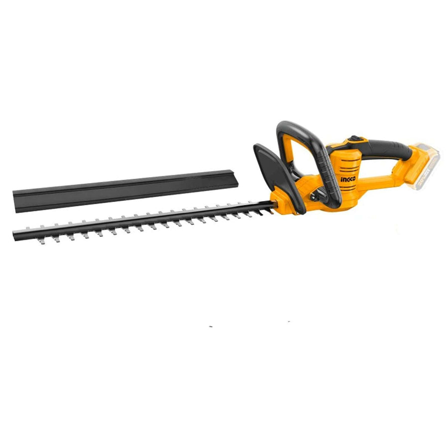 The Ingco CHTLI20018 is a cordless lithium-ion hedge trimmer operating at 20V with a maximum speed of 2800 strokes per minute (spm). It features a 460mm laser-cut blade capable of trimming branches up to 18mm in diameter. The battery and charger are sold separately. This lightweight and efficient tool is packed in a color box, ideal for everyday garden trimming tasks.