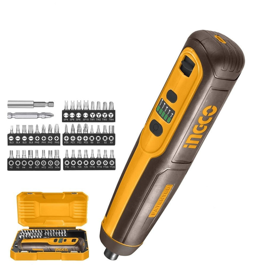 The Ingco CSDLI0406 is a compact and efficient 4V cordless screwdriver designed for light-duty tasks and everyday repairs. It features a 1/4" hex shank, a no-load speed of 240rpm, and a maximum torque of 5Nm. The tool includes an integrated work light and a charge level indicator for added convenience. Charging is done via USB Type-C cable (sold separately).