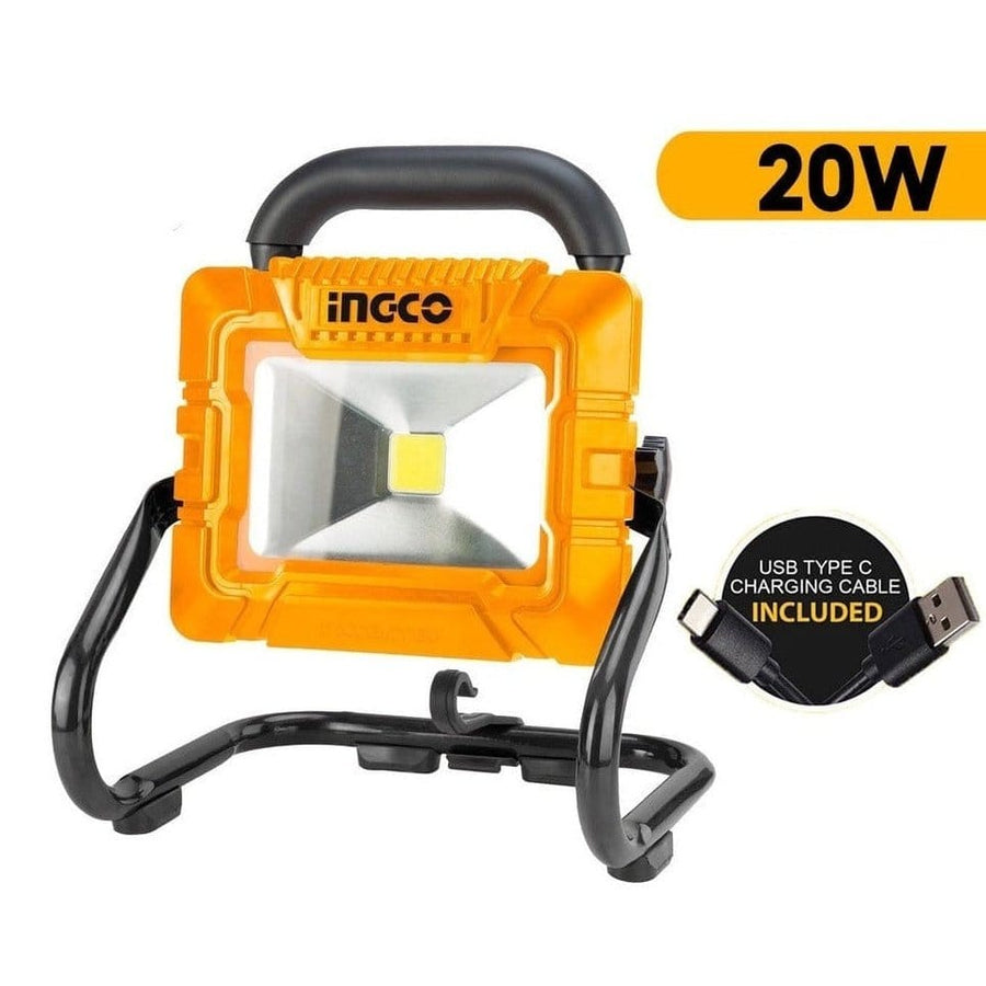 The Ingco HRLF4415 is a versatile lithium-ion portable lamp ideal for various lighting needs. Operating at 3.6V, it delivers up to 900 lumens on high mode and 500 lumens on low mode. The lamp runs for approximately 2.5 hours on high and 4 hours on low. It features a built-in 5000mAh rechargeable battery and comes with a USB charging cable. Charging time is approximately 6 hours. The unit is packed in a color box for convenient storage and transport.