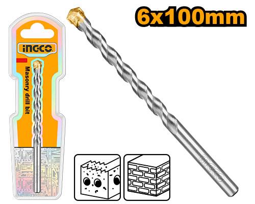 The Ingco DBM2110610 Masonry Drill Bit is ideal for precise drilling in brick, concrete, and masonry. Measuring 6 x 100mm, it features a YG8C Zhuzhou carbide tip and a 40Cr steel drill pipe for enhanced durability and strength. Its bright black surface provides resistance to wear and corrosion. Sold as a single piece, the bit is packed in a double blister for added protection and professional presentation.