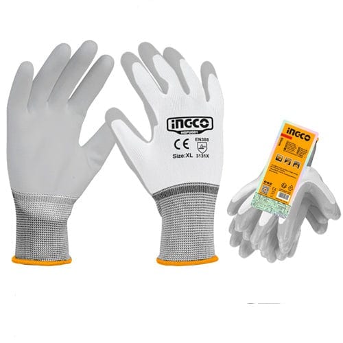 The Ingco HGPUG01 PU Coated Gloves are designed for use in light oil environments, providing protection and enhanced grip for workers handling oily or slippery materials. These gloves feature a palm dip polyurethane (PU) coating that offers durabi