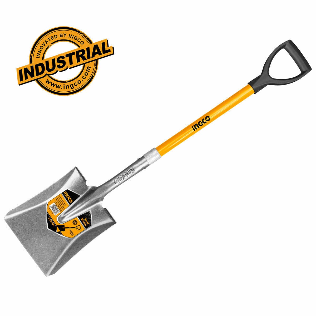 This Ingco steel spade features a durable fiberglass handle for strength and comfort. The shovel includes a sharp edge for efficient digging. The shovel head weighs 1.10kg and measures 280mm in length and 235mm in width. The total length of the sp