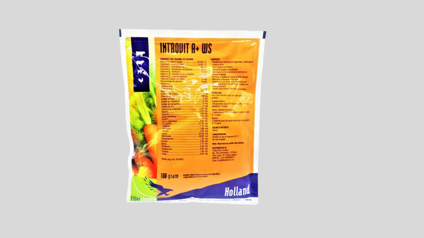 Introvit A+ Powder is a well-balanced nutritional supplement providing essential vitamins, minerals, and amino acids for calves, cattle, goats, poultry, sheep, and swine. It is designed to prevent or treat deficiencies, reduce stress caused by vac